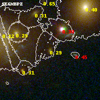 Object #768 x,y = (1869, 1734) RA, Dec = (23:08:24.168, -2:12:14.40) = (347.10070, -2.20400) BPZ = 0.292 [0.225--0.668] type = 4.90 (ES0_B10 - Ell4_A_0) chisq2 = 0.83 ODDS = 0.34 z_cluster = 0.297
