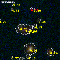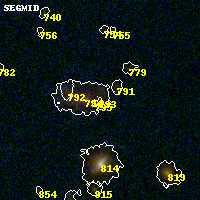 Object #793 x,y = (2355, 1837) RA, Dec = (23:08:22.200, -2:12:08.28) = (347.09250, -2.20230) BPZ = 0.342 [0.040--1.535] type = 7.80 (SB1_B10 - Scd_B10) chisq2 = 0.67 ODDS = 0.28 z_cluster = 0.297