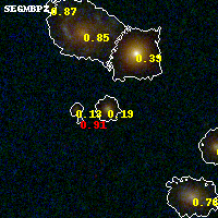 Object #883 x,y = (2342, 1591) RA, Dec = (23:08:22.272, -2:12:23.04) = (347.09280, -2.20640) BPZ = 0.190 [0.106--0.459] type = 3.40 (Ell5_A_0 - Ell4_A_0) chisq2 = 0.22 ODDS = 0.78 z_cluster = 0.297