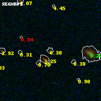 Object #908 x,y = (2048, 1559) RA, Dec = (23:08:23.448, -2:12:25.20) = (347.09770, -2.20700) BPZ = 0.302 [0.070--3.846] type = 7.30 (Scd_B10 - SB1_B10) chisq2 = 0.44 ODDS = 0.14 z_cluster = 0.297