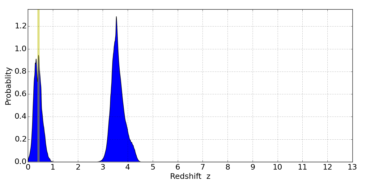 Best viewed in a wide browser window (1200 pixels or more). Download SED & P(z) plots to view larger versions.