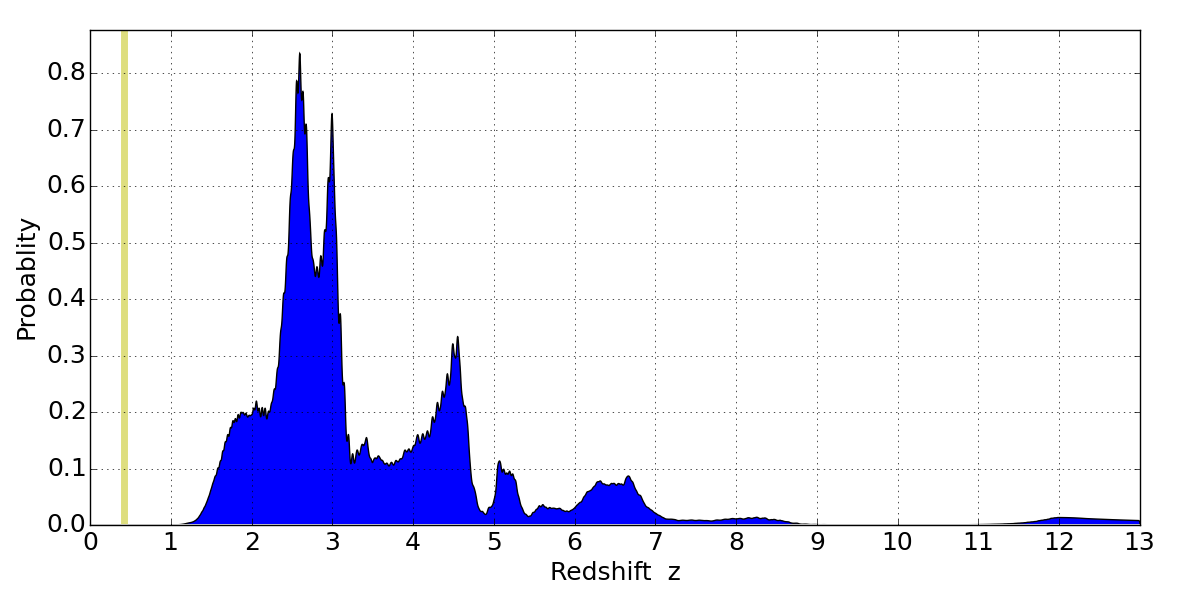 Best viewed in a wide browser window (1200 pixels or more). Download SED & P(z) plots to view larger versions.