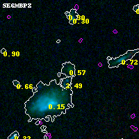 Black segments are analyzed here. Roll mouse over color images to view segments. Best viewed in a wide browser window (1200 pixels or more). Download SED & P(z) plots to view larger versions.