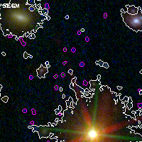 Black segments are analyzed here. Roll mouse over color images to view segments. Best viewed in a wide browser window (1200 pixels or more). Download SED & P(z) plots to view larger versions.