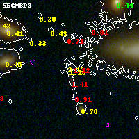 Black segments are analyzed here. Roll mouse over color images to view segments. Best viewed in a wide browser window (1200 pixels or more). Download SED & P(z) plots to view larger versions.