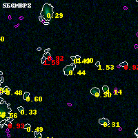 Black segments are analyzed here. Roll mouse over color images to view segments. Best viewed in a wide browser window (1200 pixels or more). Download SED & P(z) plots to view larger versions.