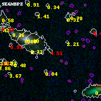 Black segments are analyzed here. Roll mouse over color images to view segments. Best viewed in a wide browser window (1200 pixels or more). Download SED & P(z) plots to view larger versions.