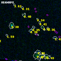 Black segments are analyzed here. Roll mouse over color images to view segments. Best viewed in a wide browser window (1200 pixels or more). Download SED & P(z) plots to view larger versions.