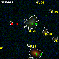 Black segments are analyzed here. Roll mouse over color images to view segments. Best viewed in a wide browser window (1200 pixels or more). Download SED & P(z) plots to view larger versions.