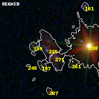 Black segments are analyzed here. Roll mouse over color images to view segments. Best viewed in a wide browser window (1200 pixels or more). Download SED & P(z) plots to view larger versions.