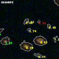 Black segments are analyzed here. Roll mouse over color images to view segments. Best viewed in a wide browser window (1200 pixels or more). Download SED & P(z) plots to view larger versions.