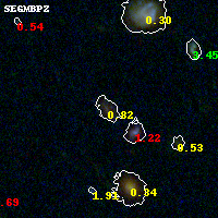 Black segments are analyzed here. Roll mouse over color images to view segments. Best viewed in a wide browser window (1200 pixels or more). Download SED & P(z) plots to view larger versions.