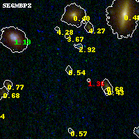 Black segments are analyzed here. Roll mouse over color images to view segments. Best viewed in a wide browser window (1200 pixels or more). Download SED & P(z) plots to view larger versions.