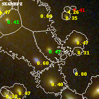 Black segments are analyzed here. Roll mouse over color images to view segments. Best viewed in a wide browser window (1200 pixels or more). Download SED & P(z) plots to view larger versions.