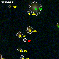 Black segments are analyzed here. Roll mouse over color images to view segments. Best viewed in a wide browser window (1200 pixels or more). Download SED & P(z) plots to view larger versions.