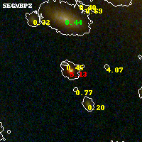 Black segments are analyzed here. Roll mouse over color images to view segments. Best viewed in a wide browser window (1200 pixels or more). Download SED & P(z) plots to view larger versions.