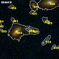 Black segments are analyzed here. Roll mouse over color images to view segments. Best viewed in a wide browser window (1200 pixels or more). Download SED & P(z) plots to view larger versions.