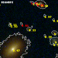 Black segments are analyzed here. Roll mouse over color images to view segments. Best viewed in a wide browser window (1200 pixels or more). Download SED & P(z) plots to view larger versions.
