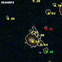 Black segments are analyzed here. Roll mouse over color images to view segments. Best viewed in a wide browser window (1200 pixels or more). Download SED & P(z) plots to view larger versions.