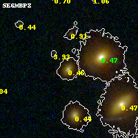 Black segments are analyzed here. Roll mouse over color images to view segments. Best viewed in a wide browser window (1200 pixels or more). Download SED & P(z) plots to view larger versions.