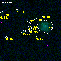 Object #11273 x,y = (3062, 6954) RA, Dec = (04:54:13.224, 02:58:49.44) = (73.55510, 2.98040) BPZ = 0.448 [0.136--2.811] type = 9.90 (SB3_B10 - SB2_B10) chisq2 = 0.00 ODDS = 0.06 z_cluster = 0.203