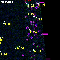 Object #11684 x,y = (7111, 6774) RA, Dec = (04:53:57.024, 02:58:38.64) = (73.48760, 2.97740) BPZ = 5.905 [2.523--8.925] type = 6.00 (Sbc_B10) chisq2 = 0.00 ODDS = 0.27 z_cluster = 0.203