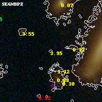 Object #15321 x,y = (2479, 5237) RA, Dec = (04:54:15.576, 02:57:06.48) = (73.56490, 2.95180) BPZ = 3.951 [3.310--4.268] type = 10.20 (SB3_B10 - SB11_A_0_l) chisq2 = 0.92 ODDS = 0.63 z_cluster = 0.203