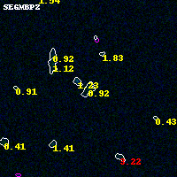 Object #17026 x,y = (6765, 4597) RA, Dec = (04:53:58.392, 02:56:27.96) = (73.49330, 2.94110) BPZ = 0.915 [0.700--1.978] type = 8.60 (SB2_B10 - SB1_B10) chisq2 = 0.29 ODDS = 0.28 z_cluster = 0.203