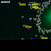 Object #1723 x,y = (1937, 1282) RA, Dec = (04:54:17.736, 02:53:08.88) = (73.57390, 2.88580) BPZ = 1.459 [0.177--3.027] type = 9.10 (SB2_B10 - SB3_B10) chisq2 = 0.07 ODDS = 0.10 z_cluster = 0.203