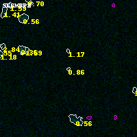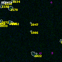 Object #1986 x,y = (1260, 1388) RA, Dec = (04:54:20.448, 02:53:15.36) = (73.58520, 2.88760) BPZ = 0.858 [0.456--5.369] type = 3.00 (Ell5_A_0) chisq2 = 0.02 ODDS = 0.10 z_cluster = 0.203