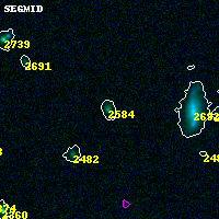 Object #2584 x,y = (7002, 1635) RA, Dec = (04:53:57.456, 02:53:30.12) = (73.48940, 2.89170) BPZ = 0.906 [0.762--2.186] type = 6.50 (Scd_B10 - Sbc_B10) chisq2 = 0.00 ODDS = 0.26 z_cluster = 0.203