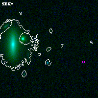 Object #2840 x,y = (1303, 1739) RA, Dec = (04:54:20.280, 02:53:36.24) = (73.58450, 2.89340) BPZ = 0.302 [0.093--3.897] type = 7.50 (SB1_B10 - Scd_B10) chisq2 = 0.17 ODDS = 0.08 z_cluster = 0.203
