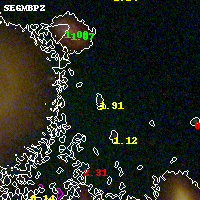 Object #2999 x,y = (6133, 1801) RA, Dec = (04:54:00.936, 02:53:40.20) = (73.50390, 2.89450) BPZ = 1.913 [1.272--2.658] type = 10.70 (SB11_A_0_l - SB3_B10) chisq2 = 0.38 ODDS = 0.27 z_cluster = 0.203
