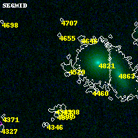 Object #4529 x,y = (2429, 2382) RA, Dec = (04:54:15.768, 02:54:15.12) = (73.56570, 2.90420) BPZ = 0.522 [0.098--2.994] type = 8.70 (SB2_B10 - SB1_B10) chisq2 = 0.00 ODDS = 0.16 z_cluster = 0.203