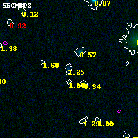 Object #5953 x,y = (2441, 2942) RA, Dec = (04:54:15.720, 02:54:48.60) = (73.56550, 2.91350) BPZ = 1.252 [1.122--2.473] type = 10.70 (SB11_A_0_l - SB3_B10) chisq2 = 0.00 ODDS = 0.24 z_cluster = 0.203