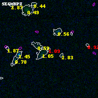 Object #6779 x,y = (3348, 3255) RA, Dec = (04:54:12.096, 02:55:07.32) = (73.55040, 2.91870) BPZ = 1.086 [0.591--2.544] type = 11.00 (SB11_A_0_l) chisq2 = 2.51 ODDS = 0.15 z_cluster = 0.203