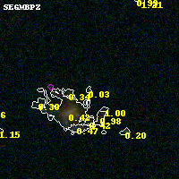 Object #833 x,y = (5426, 727) RA, Dec = (04:54:03.768, 02:52:35.76) = (73.51570, 2.87660) BPZ = 0.033 [0.029--2.883] type = 11.00 (SB11_A_0_l) chisq2 = 0.51 ODDS = 0.07 z_cluster = 0.203