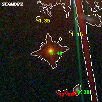 Object #145 x,y = (5872, 1379) RA, Dec = (04:54:01.968, 02:53:15.00) = (73.50820, 2.88750) BPZ = 5.458 [5.425--5.494] type = 7.10 (Scd_B10 - SB1_B10) chisq2 = 0.58 ODDS = 1.00 z_cluster = 0.203