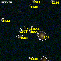 Object #1555 x,y = (1703, 5310) RA, Dec = (04:54:18.672, 02:57:10.80) = (73.57780, 2.95300) BPZ = 0.839 [0.640--1.092] type = 10.30 (SB3_B10 - SB11_A_0_l) chisq2 = 0.26 ODDS = 0.35 z_cluster = 0.203