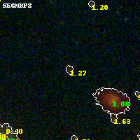Object #410 x,y = (5705, 1909) RA, Dec = (04:54:02.640, 02:53:46.68) = (73.51100, 2.89630) BPZ = 1.270 [1.036--1.725] type = 9.00 (SB2_B10) chisq2 = 0.17 ODDS = 0.44 z_cluster = 0.203