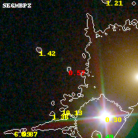 Object #856 x,y = (2130, 3677) RA, Dec = (04:54:16.968, 02:55:32.88) = (73.57070, 2.92580) BPZ = 0.567 [0.122--3.147] type = 10.60 (SB11_A_0_l - SB3_B10) chisq2 = 1.18 ODDS = 0.16 z_cluster = 0.203