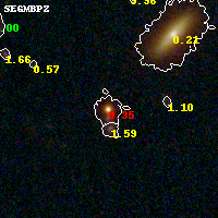 Object #1360 x,y = (2294, 5114) RA, Dec = (04:54:16.320, 02:56:58.92) = (73.56800, 2.94970) BPZ = 0.352 [0.297--0.389] type = 3.60 (Ell4_A_0 - Ell5_A_0) chisq2 = 1.09 ODDS = 0.97 z_cluster = 0.203