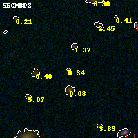 Object #1680 x,y = (1525, 5131) RA, Dec = (04:54:19.392, 02:57:00.00) = (73.58080, 2.95000) BPZ = 0.337 [0.166--3.750] type = 9.70 (SB3_B10 - SB2_B10) chisq2 = 0.80 ODDS = 0.14 z_cluster = 0.203