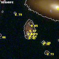 Object #367 x,y = (4065, 1884) RA, Dec = (04:54:09.216, 02:53:45.24) = (73.53840, 2.89590) BPZ = 0.869 [0.754--0.900] type = 7.90 (SB1_B10 - Scd_B10) chisq2 = 0.07 ODDS = 0.86 z_cluster = 0.203