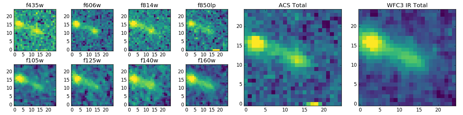 Black segments are analyzed here. Roll mouse over color images to view segments. Best viewed in a wide browser window (1200 pixels or more). Download SED & P(z) plots to view larger versions.