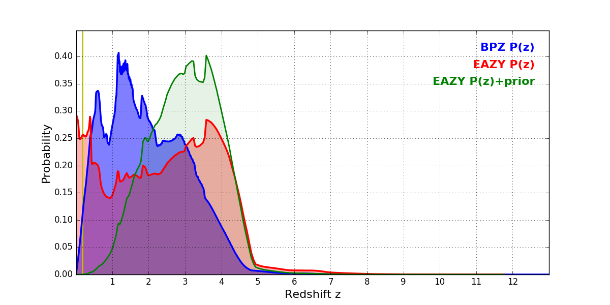 In P(z) plots: Yellow lines mark the cluster redshift z = 0.182,