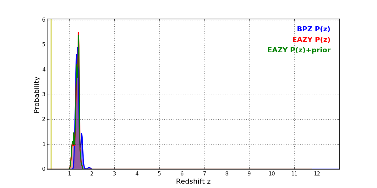 In P(z) plots: Yellow lines mark the cluster redshift z = 0.182,