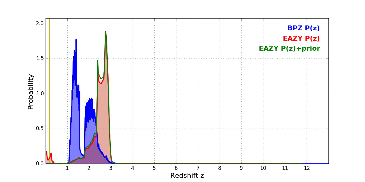 In P(z) plots: Yellow lines mark the cluster redshift z = 0.182,
