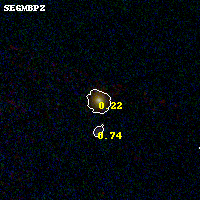 Object #2 x,y = (2020, 3784) RA, Dec = (08:43:01.608, 36:23:08.52) = (130.75670, 36.38570) BPZ = 0.220 [0.166--0.773] type = 3.00 (Ell5_A_0) chisq2 = 0.03 ODDS = 0.65 z_cluster = 0.282