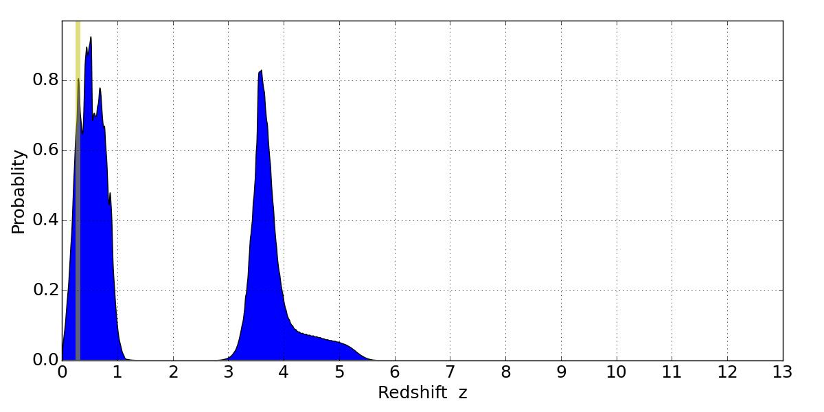 Best viewed in a wide browser window (1200 pixels or more). Download SED & P(z) plots to view larger versions.